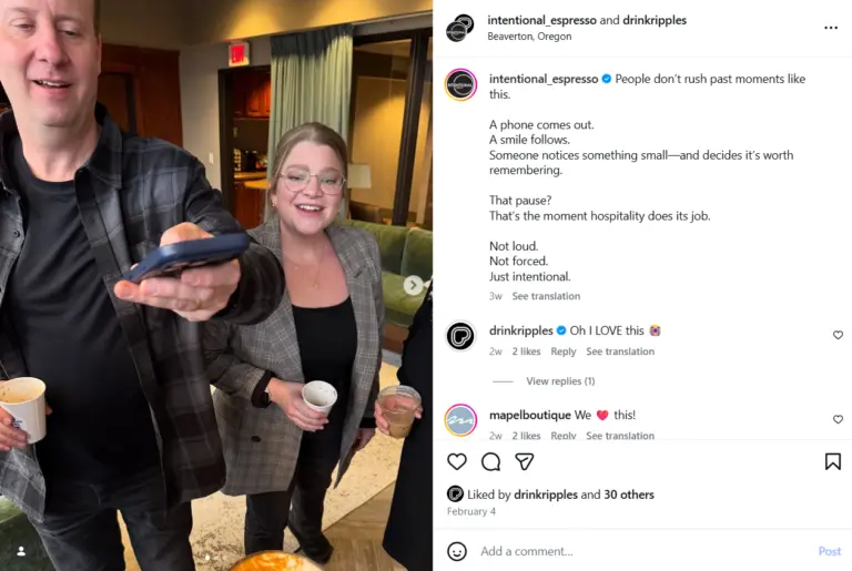 Instead of just serving a drink, you’re serving: a photo opportunity, a conversation, and most importantly, a branded moment. That’s marketing built directly into your service.