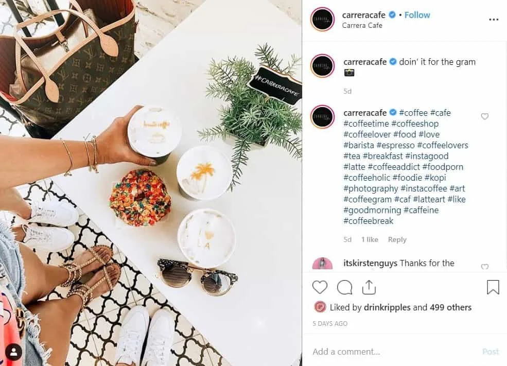 How to make it work: First of all, make it easy for customers to get a good photo of something they simply must share. Whether that means using bev-top media like the Ripples printer to customize lattes or pints, putting a focus on creating aesthetically pleasing dishes, or designing your space with gram-worthy décor and lighting is up to you and your budget. You can’t expect your customers to turn even the best tasting food and beverages into a post if you don’t give them a little help.
