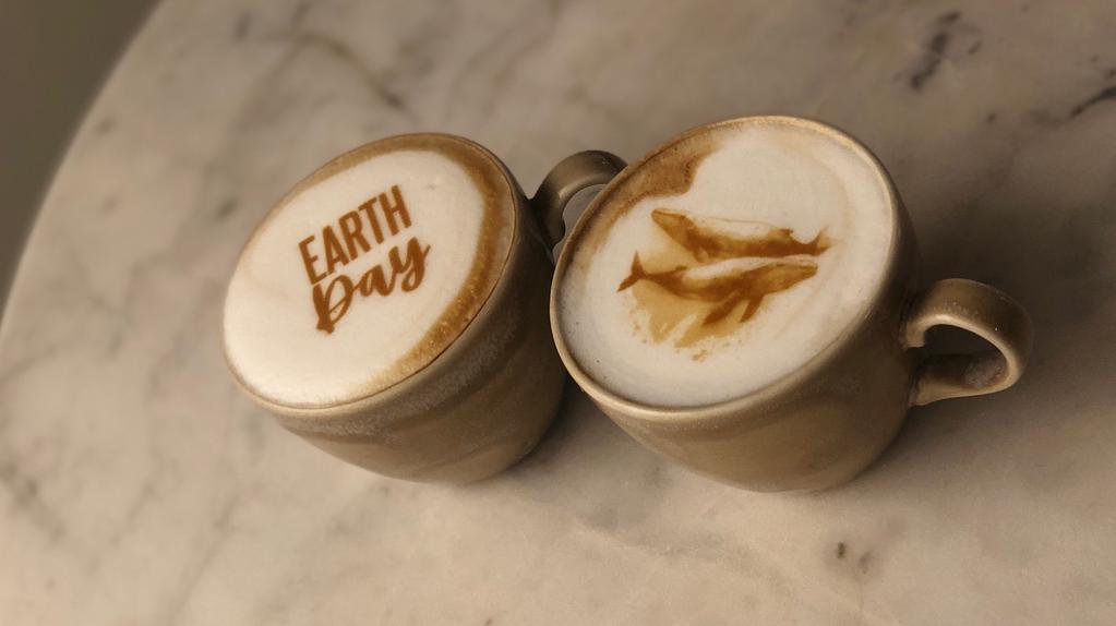 Earth Day design on coffee