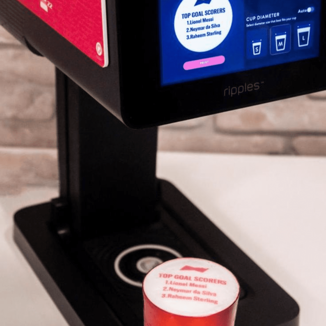 Brands and businesses worldwide use the Ripple Maker drink printer for reliable media coverage, guaranteed social media reach and increased revenue.