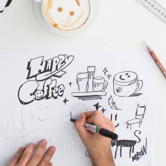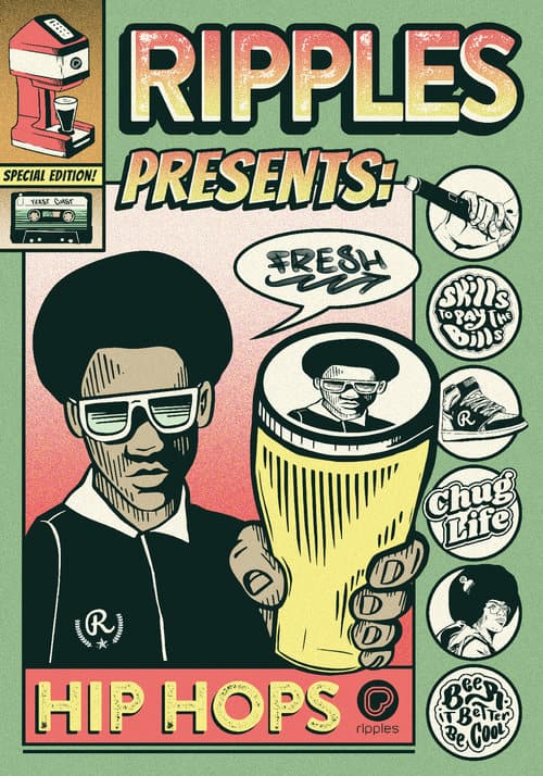 4. How does illustrating for a foam-topped drink differ from illustration for other media?The biggest difference is that the design needs to be black and white, with bold lines and high contrast so the image is clear when it’s printed on a drink. 5. What advice do you have for people designing their own Ripples prints?Do a few different versions of your design and play with the thickness of your lines and the amount of detail you include. Test the design with your Ripple Maker (print on a drink or on a piece of paper) so you can understand how to translate your style to print optimally on a drink.6. If you had to pick just one Ripples design (yours or someone else’s) to print every single day for the rest of your life, which would it be?The guy in sunglasses from the hip hop series campaign.Noam’s work at the office