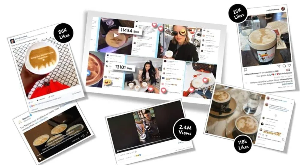 If you give a customer a cocktail topped with her selfie, she’s going to want to post it on Instagram. And then she’ll want another cocktail to go with it. And then all her friends and followers will want to know where she was and go there too and get their own cocktails to post on their own accounts— and if you have an Enhanced Service Plan or higher you can add your own logo or custom hashtag to each and every drink.